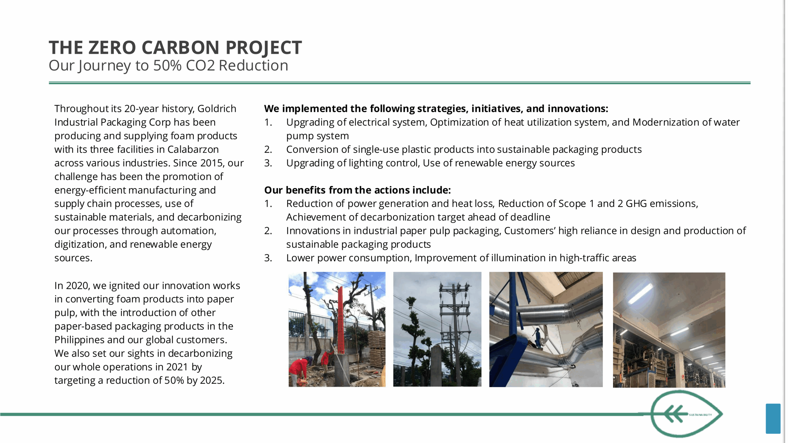 Our mission at Goldrich Industrial Packaging Corp is: The continuous improvement of the company’s capabilities, quality, competitiveness, knowledge, and corporate governance. In pursuing this mission as a world-class company, we are committed to implement our goals through and with our Customer, Employees, Safety, Industry, Community, and Nation. While we commit towards our Community and Nation, this policy further strengthens our commitment to better environmental impact and strive for sustainability across every function, including development, sourcing, and procurement.